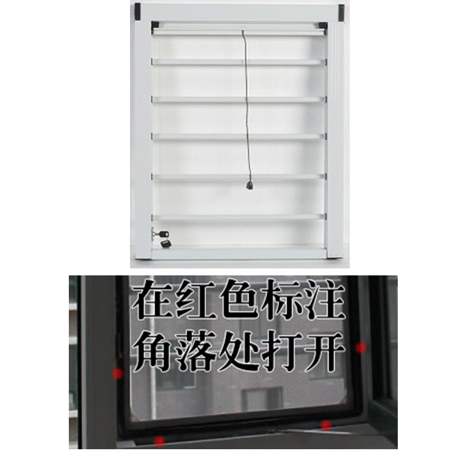 3、 在窗口角落處上螺絲到防護窗上,使兩者緊密相連,注意帶鑰匙的邊框中間有鎖片,螺絲不能打到鎖片上,外裝的時候,紗還要在滑道里滑動,螺絲要打到紗窗邊緣處(邊緣8MM 內(nèi)沒有紗窗),不影響紗窗上下拉動;內(nèi)裝從外向里打,外裝從內(nèi)向外打;