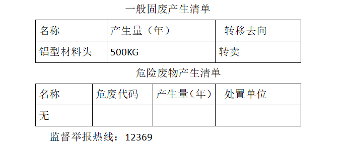 怡景門窗固體廢物產生單位信息公示